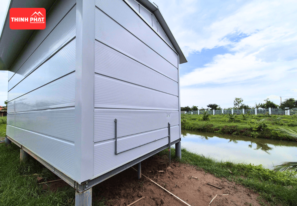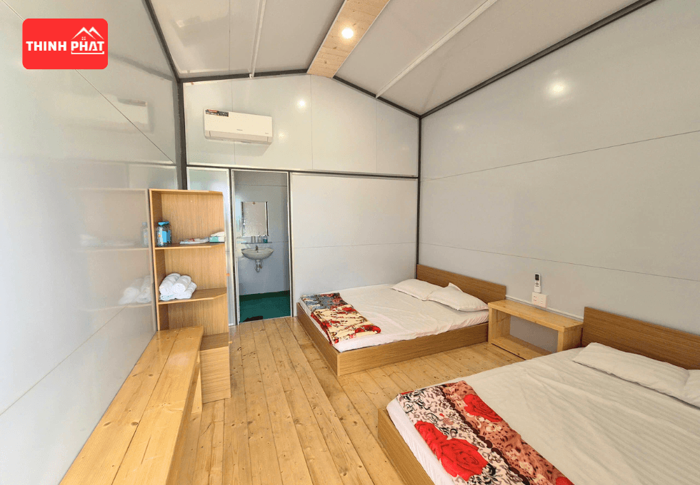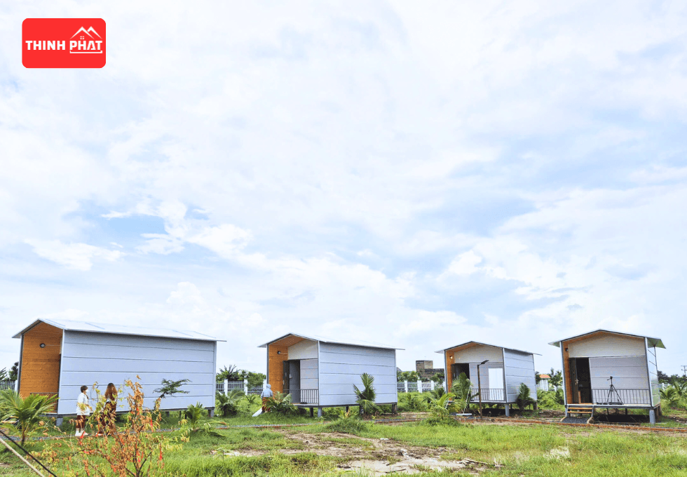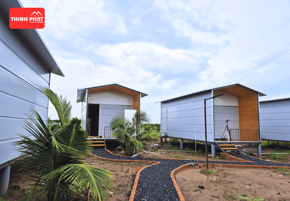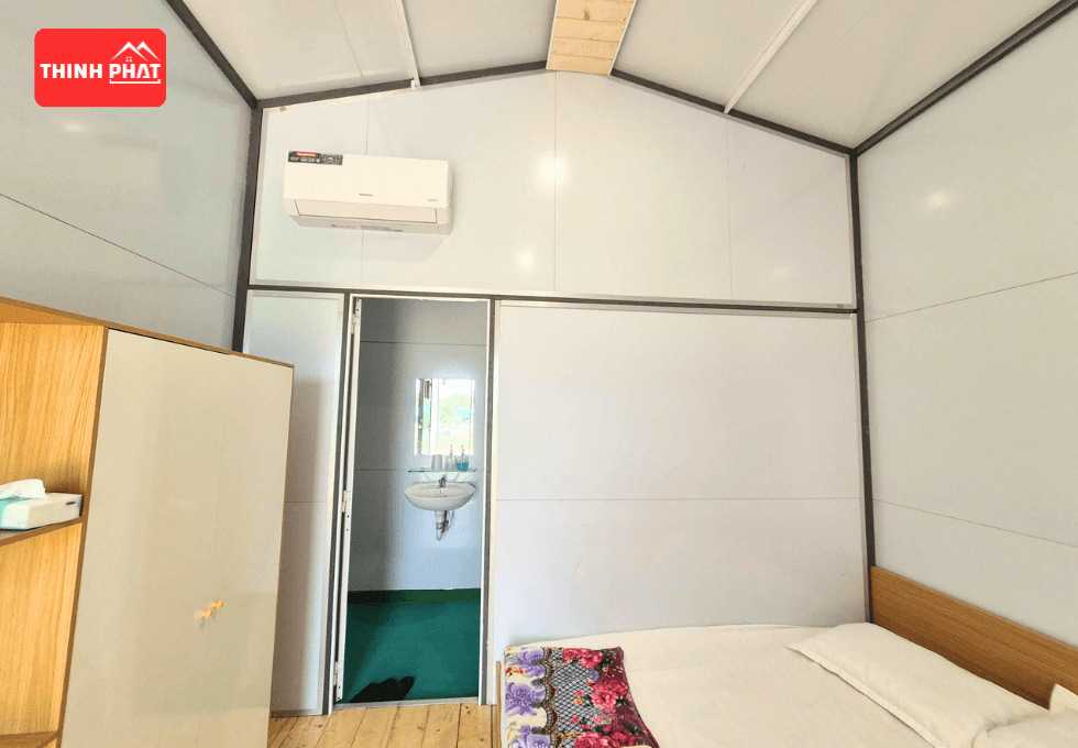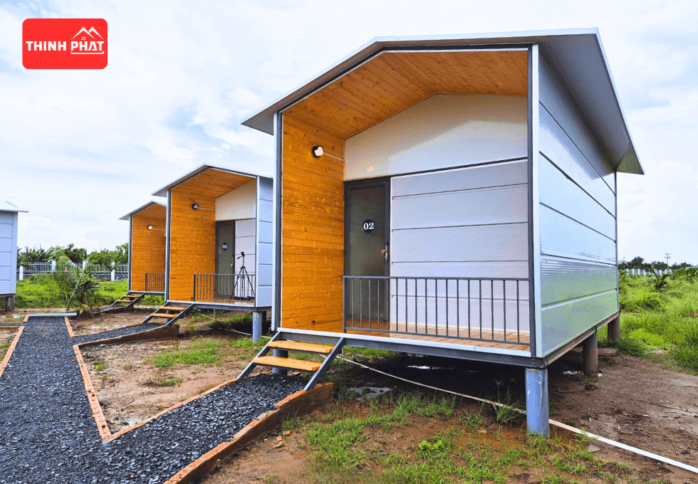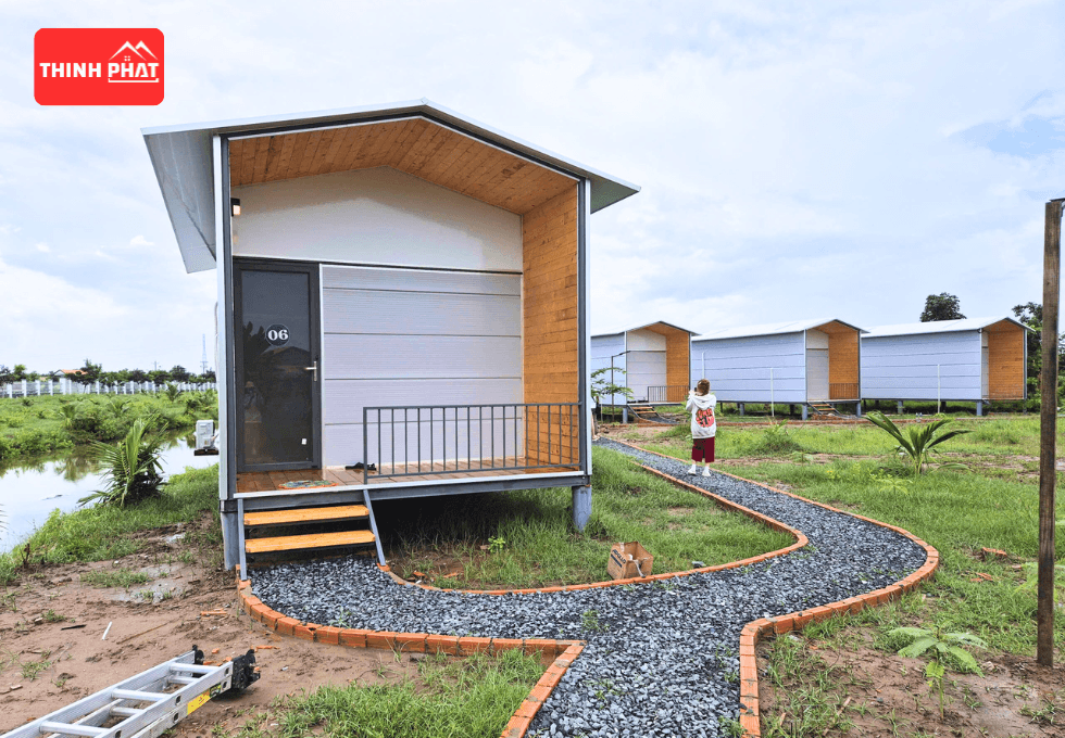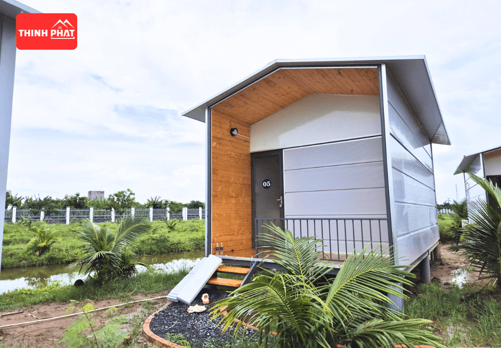 Mỗi căn homestay được thi công với diện tích 4x7m (28m²), sử dụng vật liệu panel EPS cho vách ngoài giúp cách nhiệt, chống nóng và thi công nhanh chóng. Chi phí đầu tư khoảng 40 triệu đồng/căn, phù hợp với mô hình kinh doanh homestay quy mô vừa và nhỏ.